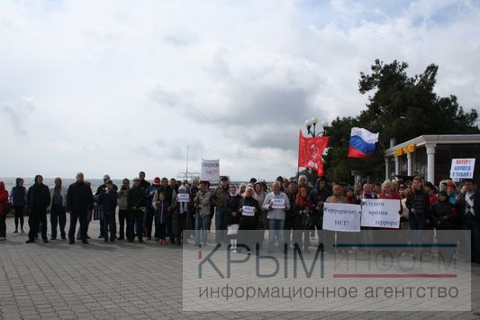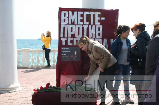В Ялте митинг «Вместе против террора» в память о жертвах теракта в Санкт-Петербурге проходил на набережной города. Участники акции держали в руках плакаты с надписями «Мы вместе против террора», «НЕТ терроризму», «Терроризм – зло», «Мы за мир», «Мы вместе с тобой, Питер».