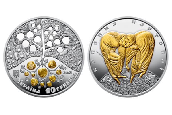 На аверсе монеты изображено стилизованное изображение дерева жизни. На реверсе изображены два стилизованных изображения сгорбленных мужчины и женщины, копающих картошку. Их фигуры, по задумке автора, образуют золотое сердце. По кругу размещена надпись «Копание картошки». Номинал монеты – 10 гривен, тираж – 4 тыс.