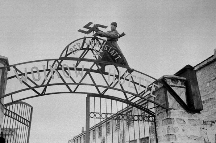 Керчь освобождена. С оборудованных немцами мастерских снимают последнюю нацистскую символику