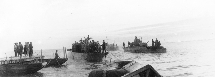Освобождение Керченского полуострова началось с высадки Эльтигенского десанта в ноябре 1943 года. Бронекатера Черноморского флота проекта 1124 осуществляют высадку советских войск на крымский берег на плацдарм под Еникале