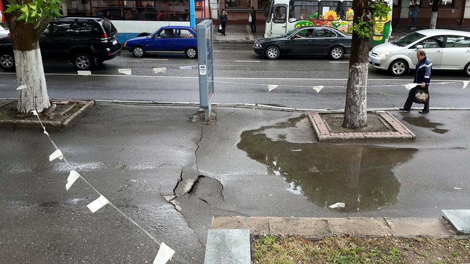 Симферополь, 5 июня. Крыминформ. На остановке общественного транспорта на площади Ленина в Симферополе после нескольких дней ливневых дождей просел асфальт.