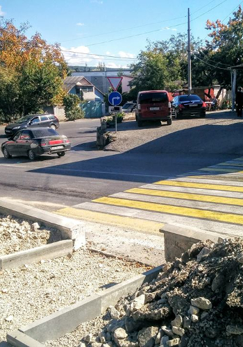 Накануне о появлении пешеходного перехода «для прыгунов» в Симферополе сообщил Крыминформ. Желающим воспользоваться «зеброй» и перейти с одной стороны на другую было необходимо преодолеть почти полуметровый парапет, а также клумбу, отделяющую проезжую часть от пешеходной зоны.