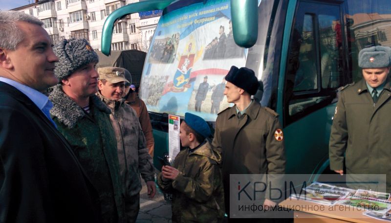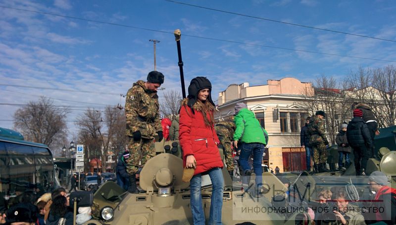 Военную технику изучил и глава Крыма. Остановившись рядом с БМД, он обратился к ребенку, который с большим энтузиазмом изучал машину: «Не научили управлять еще? Что, за руль не пускают?» Находящийся рядом солдат поспешил исправить оплошность и немедленно доставил ребенка внутрь БМД к его нескрываемому восторгу.