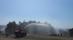 В учениях был задействован вертолет МЧС России МИ-8, оснащенный резервуаром для забора воды. Такое устройство вмещает три тонны воды, которую вертолет трижды сливал на место условного пожара.