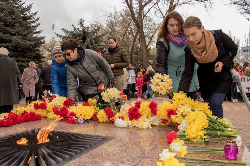 В Феодосии митинг «Вместе против террора» проходил возле Вечного огня. «Сегодня, 8 апреля, в Феодосии, возле Вечного огня состоялась акция солидарности «Питер! Мы с тобой!» Спасибо всем, кто пришел, кто не остался в стороне, кто выразил свою поддержку пострадавшим и скорбь по погибшим...» – сообщил на своей странице в социальной сети Facebook глава администрации Феодосии Станислав Крысин.