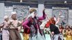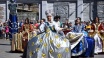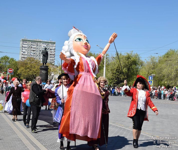 «Представление «Екатерининская миля» началось с прибытия на Театральную площадь владыки морей и океанов Посейдона в сопровождении артистов театра на ходулях. Кульминацией праздничной программы стало появление императрицы Екатерины II в сопровождении свиты. Она торжественно провозгласила открытие курортного сезона в Евпатории», – говорится в сообщении.