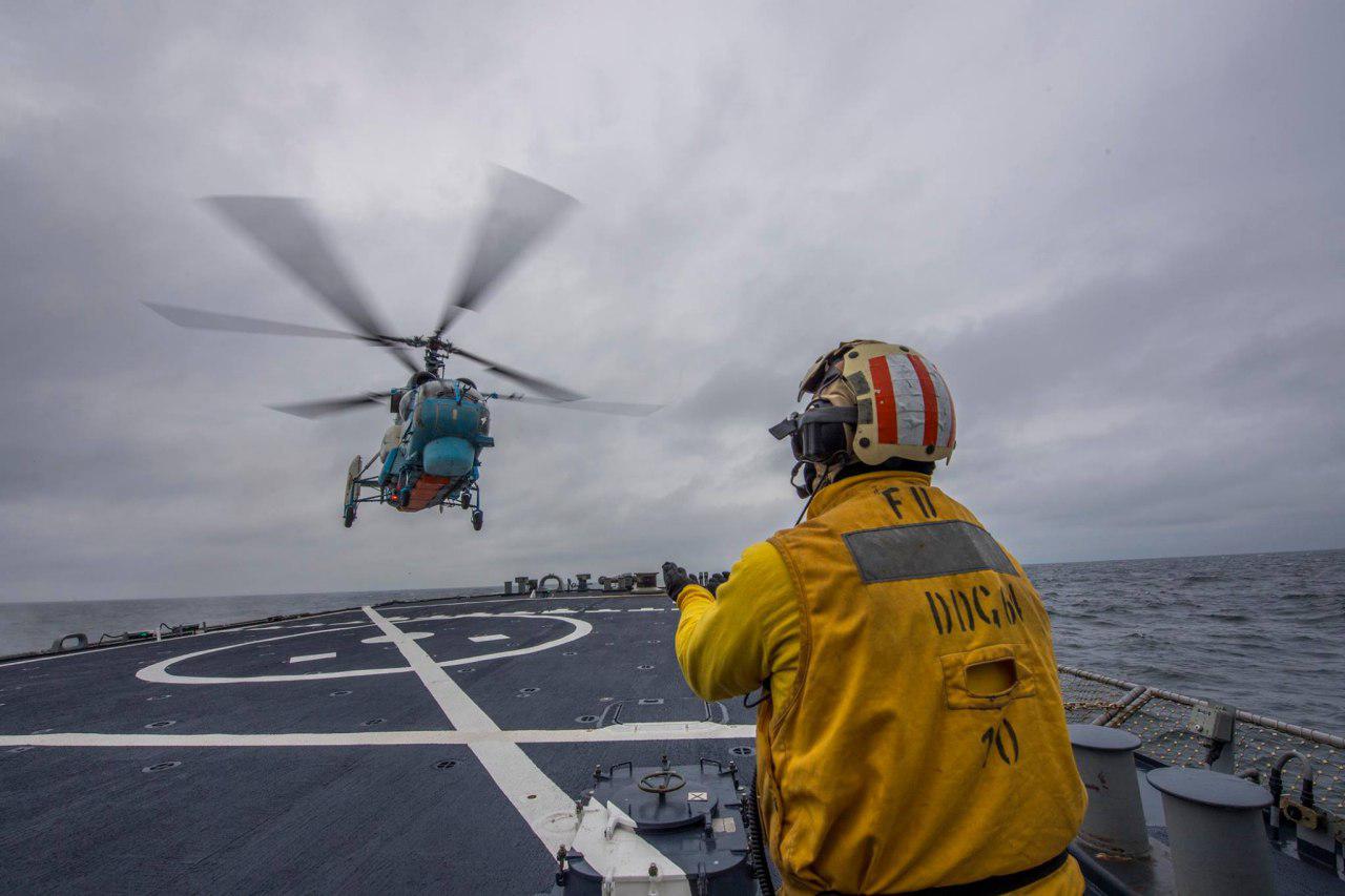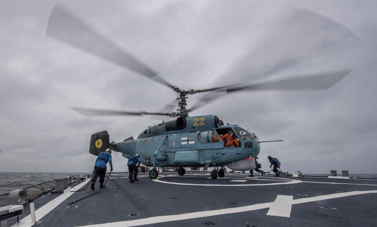 «В ходе тренировки вертолеты украинских ВМС Ка-27ПЧ и Ка-27ПР в сложных метеоусловиях осуществили больше 10 посадок на борт американского корабля, провели разведку и наблюдение за надводной обстановкой», – говорится в сообщении.