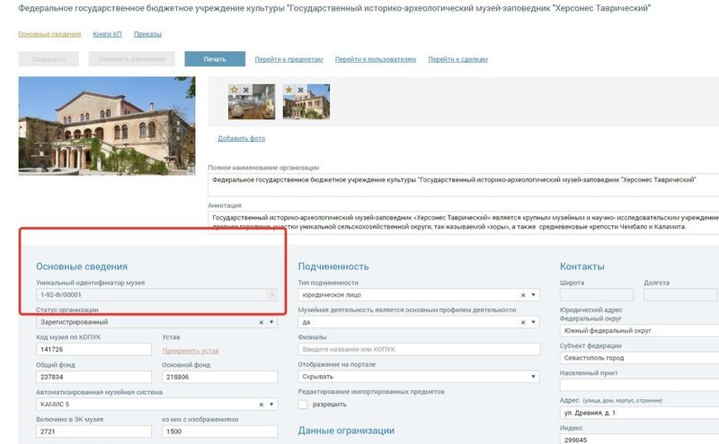 «Государственному музею-заповеднику «Херсонес Таврический» присвоен первый номер в реестре музеев Государственного каталога музейного фонда Российской Федерации. Наш номер в реестре – 1-92-Ф/00001 (с кодом), без кода – 00001», – говорится в сообщении.